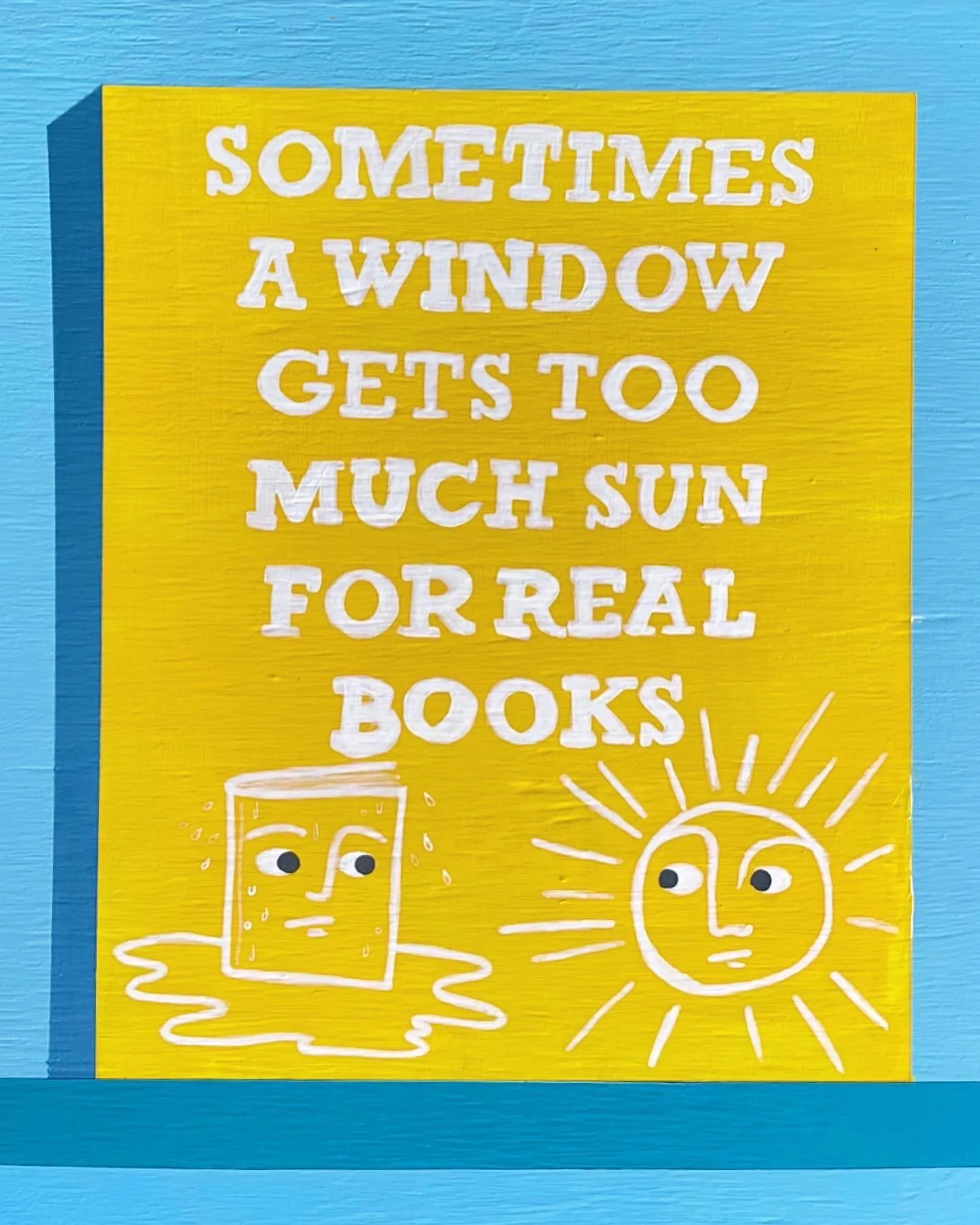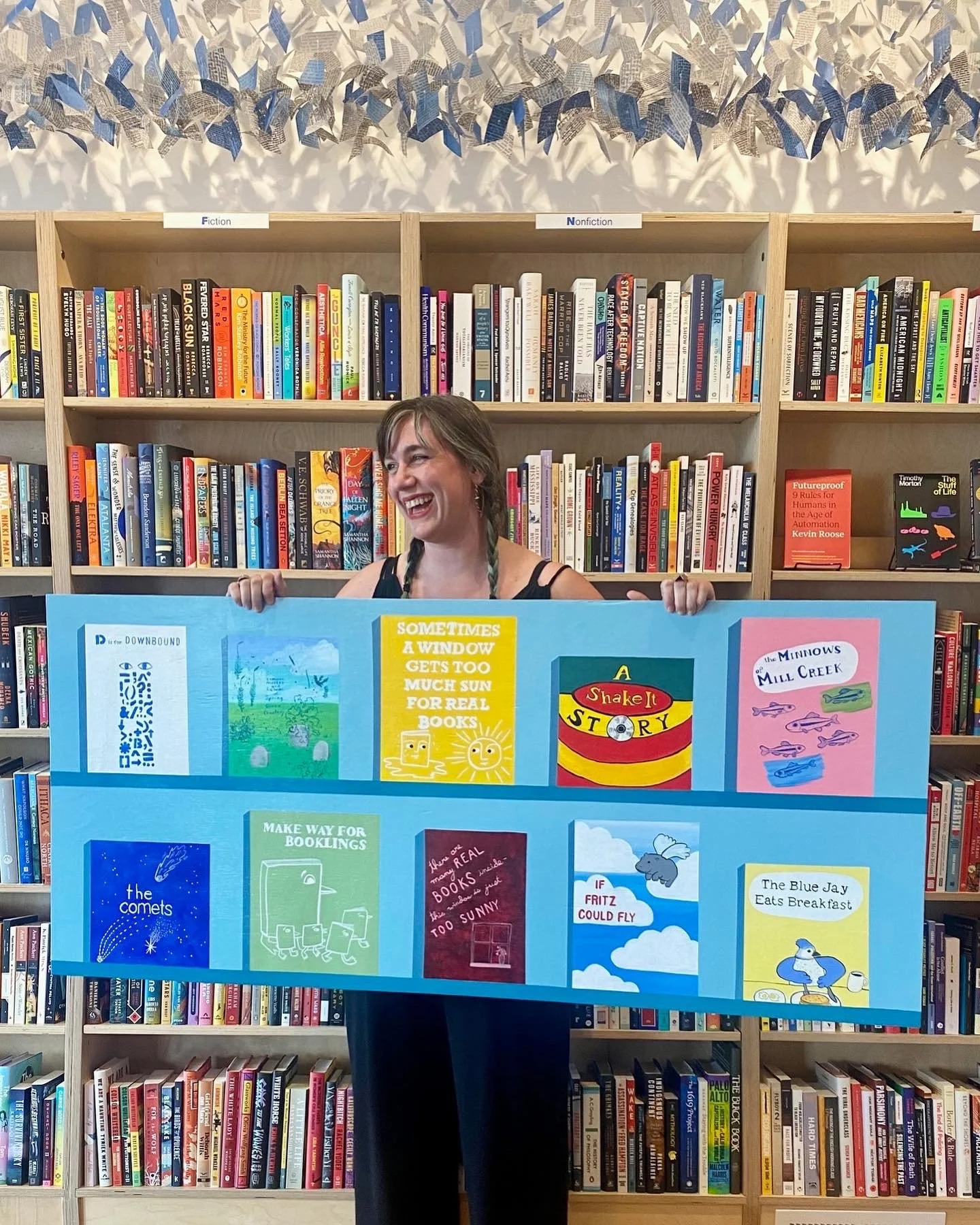 I created this window display for Downbound Books’ beautiful (but very sunny) front window to prevent the direct sunlight from damaging their displays.